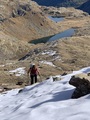 Start ture je Santa Gertrude 1400, Val d’Ultimo. Do Passo di Rabbi 2467 vodi po dolini Kircbergtal nabrita MTB singlca. Nad Rifugio Lago Corvo turo popestrijo idilična jezerca. Zgoraj je do 20 cm snega. Ta na severnih straneh ostaja; Vse skupaj je dovolj za odlično jesensko turo. Collecchio 2957 se pozimi prelevi v turno smučarski vrh.