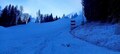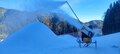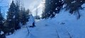 Danes pa me je pot ponesla na Sv. Višarje. V Žabnici sem jo na vrh obral kar med snežnimi topovi po smučišču.(niso moteči) Snega spodaj pri gondoli ni veliko, saj kupov umetnega še niso pogrnili, je pa dovolj za vzpon in potem dol za smučanje. Od umesne postaje pa do vrha je pa smučišče že speglano in zratrakirano. Danes me stran podil niti pri vzpenjanju niti potem pri smučanju ni nihče, čeprav sem urejevalce na progi srečal 3x.Snega po romarski poti, oz. po turni varianti pa po pripovedi Avstrijskega turaša od polovice navzdol ni dovolj. Po smučišču pa sem brez praske tudi v spodnjem delu smučal z lahkoto, na momente pa je seveda potrebno tudi malce previdnosti, da ne zajahaš kakega kamenjčka.Pri vzpenjanju pa so dobrodošli tudi srenači.