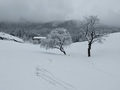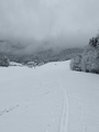 Po Božični čas je čas miru in kje bi ga lažje našel kot v meglenem Mačkinem kotu.Z namenom,da grem na Lepenatko odpeljemo iz sončne Gorenjske čez megleni Črnivec.V upanju ,da bo na toti strani še več sonca in snega,se je uresničilo le hvala Bogu drugo.Avto parkiram na vrhu Mačkinega kota in grem proti Lepenatko.A kmalu sprevidim,da je dostopna pot premalo zasnežena za smuko.Vrnem se do roba travnikov in jih trikrat od smučam,kar znese dosti užitka in treninga za natikanjem psov in zapenjanje vezi,višincev se je pa tudi nekaj nabralo,da je v Texas baru v Šmiklavžu pasal pir.