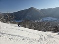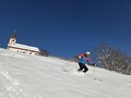 Na vrhu nas je pričakalo okoli 30cm pravega pršiča in takoj smo se zapodili po zasneženih senožetih. Ker so "bregi" tukaj bolj kratki, smo seveda zadevo nekajkrat ponovili.