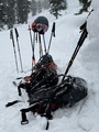 Ves dan smo se zadrževali v gozdu in na jasah. Sneg je bil hiter in današnja smuka izvrstna; 4500 vertikalcev.