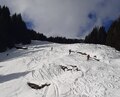 V Ukvah nas preseneti nova mitnica - 5 evrov, ki jih z veseljem damo, saj je cesta kopna, parkirišča pa lepo splužena. Mimo zasedenih spodnjih parkirišč pogumno zavijemo navzgor, kjer je še dosti prostora. Vzpon začnemo v zelo toplem soncu, ki dobro ojuži sneg. Ko pridemo iz gozda sonce zakrijejo oblaki in postane bolj prijetno za vzpon. Pobočje je seveda že popolnoma zvoženo. Proti vrhu je že skoraj pršič. Na vrhu se moramo obleči, a ni mraz. Smučarji so povsod, še največ na Kovku, pa tudi Konjščica ni osamljena. Kljub zvoženemu pobočju je smučanje kar v redu, skozi gozd je zvožena že prava smučarska proga, spodaj pa je prijetno mehko smučišče. Veselo smo zavijali Jana, Mojca, Mare, Dare in Aleš. Juhuhu!