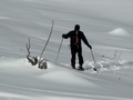 Na severnih pobočjih sneg že več kot teden dni ostaja dober. Zgoraj pod vrhom ga je veter sicer obdelal, tako da cuka in nagaja. Nižje pa se nad smuko do nekje nad 1600 ni za pritoževati prav nič. Včerajšnji nekaj centimeterski poprh je bolj kot ne le kozmetične narave.