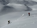 Šefu koče je ime Adriatik. Vozniku ratraka je Mama dala ime Arianit. Z main guidom, ki se kliče Eso, sva povozila še nekaj strmih kuloarjev, potem smo odpešačili čez hrib in odsmučali na kosovsko stran. Srečali smo Švicarje iz Prištine.