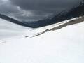 Cesta je skoraj brez snega do parkirišča za Dolgo njivo. Kakšnih 500m pred parkiriščem pa je popolnoma ledena. Sem preizkusil adrenalinski spust z avtom po ledenih kolesnicah. K sreči je nekaj kamenčkov in ročna pomagalo k ustavitvi spusta. Do Dolge njive je bolj led kot sneg in še to v presledkih. Potem pa je snežna odeja zvezna. Ker je sneg držal sem šel peš, šele na pobočju Tolste Košute se je začelo predirati in sem nataknil smuči. Spodnji del neproblematičen, zgoraj pa le snežni jeziki in je potrebno nekaj kolovratenja po travah in snegu. Ker vrh zavije megla in sem spomladansko oblečen 50 m pod vrhom končam vzpon na polički pod balvanom. Na vrh bi bilo verjetno pametno z derezami. Smučanje super, le sem in tja malo več mehkobe. Po snežnih trakovih in grapah zvezno prismučam na Zgornjo Dolgo njivo. Do gozda še vedno fajn. Skozi gozd pa malo rodea po ledu in snegu. Smuči snamem pri potočku nad parkiriščem in še 5 minut peš do avta. Juhuhu! Tako kot včasih popolnoma sam na Košuti.