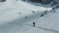 Bil je podarjeni dan. Lagoden odhod iz Ljubljane, le nekaj parkiranih avtomobilov pred vršnjim odcepom za Krnico, drsenje po zamrzlem snegu na poti do koče in malo dalje, nato pa po vse večji plasti pršiča, v katerega so vtrli pot smučarji pred nama. Bilo jih je malo. Vznesenost so nama dajale redko popisane strmine. Na prvi izravnavi pozdraviva četverico, ki se je pripravljala za spust. Ubrala sva mimo njih pod steno Križa. Poizkusila sva doseči točko tik pod steno, a se je tako mlelo pod smučmi, da sva obupala malo pod zastavljenim ciljem.
